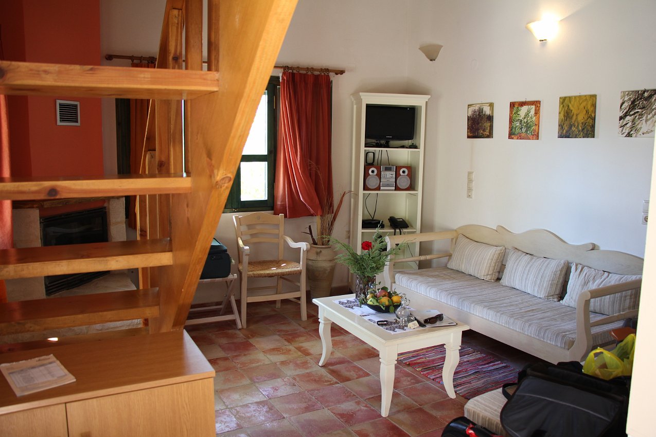 The interior of the cottages at Eleonas Traiditional Cottages, a few km outside Zaros, is nicely done. Except...