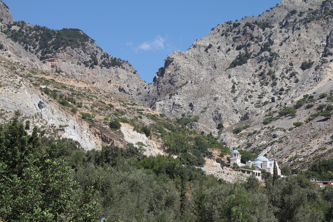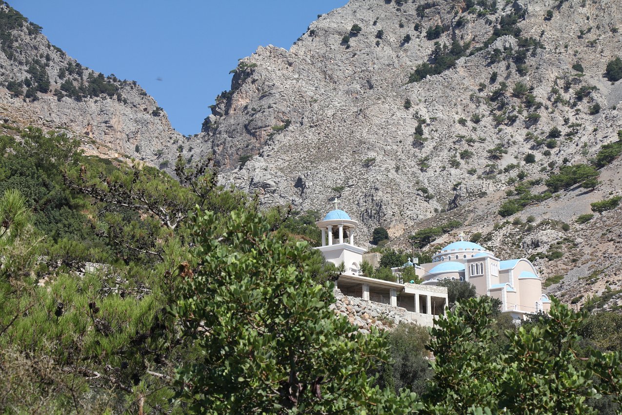Rouvas Gorge, with the garish new monastery church