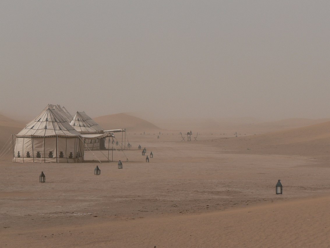 1Erg Chigaga Dunes and sand in the air; we were afraid it would be sandy the next day too, but it was not