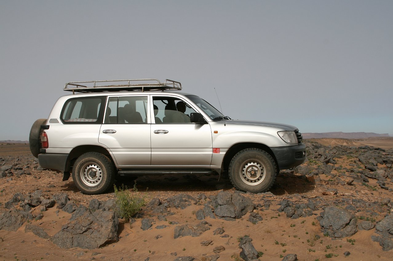 5From desert to Marrakesh Our 4wd parked on a ridge where the stones contain fossiles