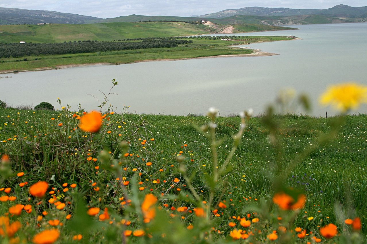 2 Fez to Volubilis Artificial lake and green hills between Fez and Volubilis |