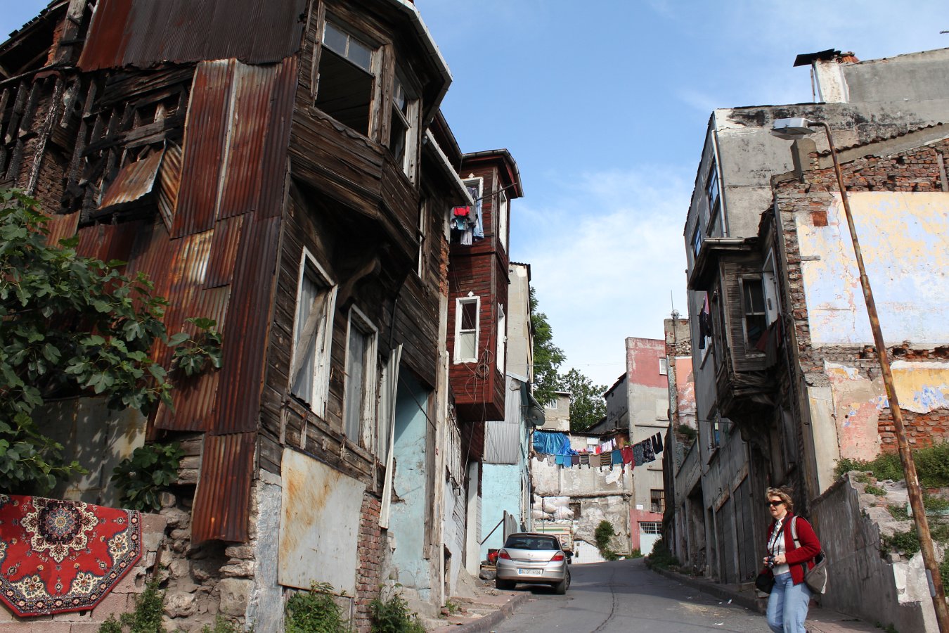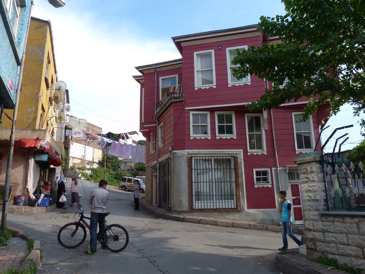 26 Swedish tourist admiring old wooden Istanbul houses